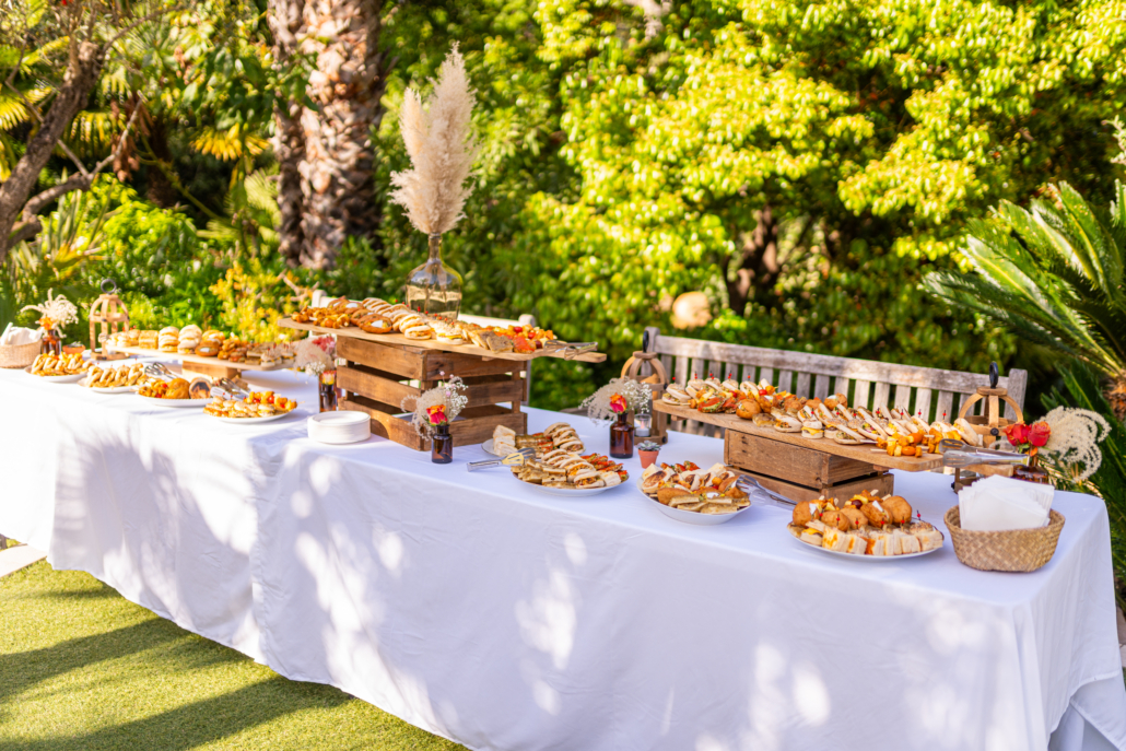 Le repas devient une mise en scène : live cooking, bar à sushis, corner méditerranéen ou barbecue sur un brasero. On cuisine devant vos invités, on flambe, on tranche, on grille… bref, on leur en met plein les yeux (et les papilles). Un esprit convivial qui colle tellement au naturel de Tropicana Flore !
