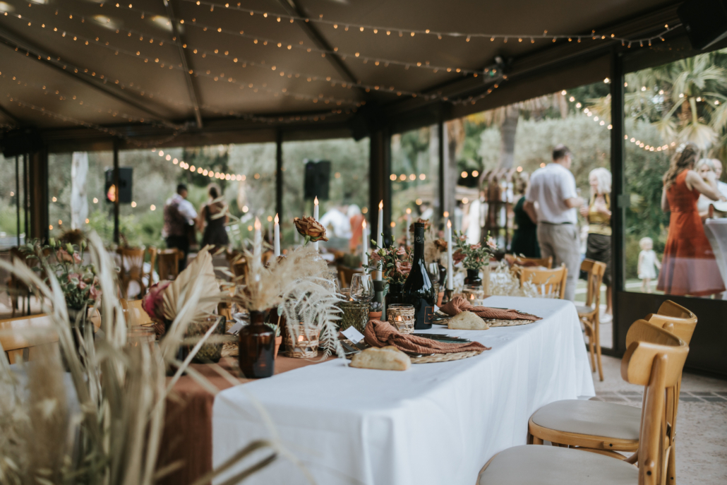 D’abord, la cérémonie laïque se déroule sur la presqu’île au milieu du lac ou dans les jardins au pied du Rocher de Roquebrune. Ensuite, le vin d’honneur se tient au bar exotique et sur la terrasse surplombant le lac et sa cascade. De là, les invités profitent d’une vue dégagée sur la palmeraie et les roches rouges. Puis le dîner et la soirée dansante se déroulent dans notre espace de réception vitré, entièrement ouvert sur les jardins. Enfin, les séances photo s’improvisent tout au long de la journée, au cœur de la palmeraie.